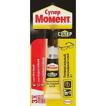 Предназначен для всех видов быстрых ремонтных работ. Склеивает мгновенно. На основе этилцианакрилата. 3 грамма.