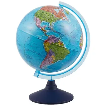 Настольный физико-политический глобус большого диаметра имеет оптимальный размер для отражения подробной карты земного шара. С таким глобусом ребенку будет