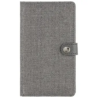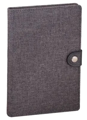 Мягкая обложка (картон+поролон+ткань) из переплетной ткани серого цвета с застежкой на кнопке и скругленными углами, формат 215х145х20 мм, 208 стр.