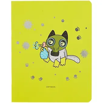 Тетрадь 48л кл. «Котик на карантине» мат. лам.,тисн.фольг.»Серебро»,ассорти. В ассортименте без возможности выбора.