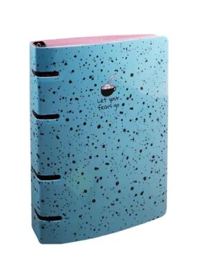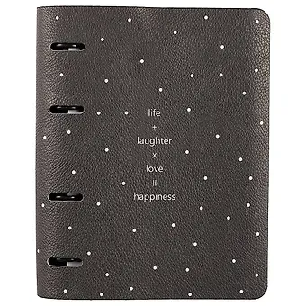Обложка: снаружи — дизайнерская искусственная кожа с ярким принтом, внутри — черный картон 500г/м2. Кольцевой механизм. Внутренний блок: офсетная