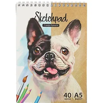 Скетчбук А5 40л 48л «Бульдог» белый офсет, крафт. бумага 80г/м2, карт.обл., гребень