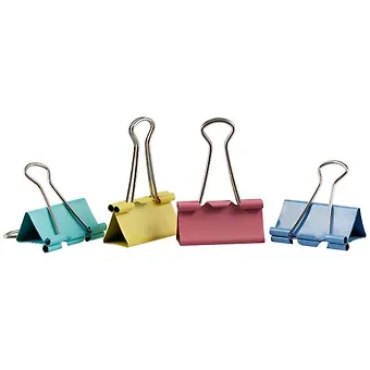 Зажимы для бумаг предназначены для скрепления бумажных документов. В упаковке 12 зажимов разных цветов. Зажимы надежно и легко скрепляют, не деформируют
