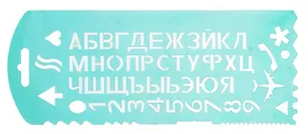 Трафарет букв и цифр СТАММ состоит из 56 элементов. В нём находятся все буквы русского алфавита, цифры, 6 типов подчёркивания, элемент «фигурная скобка»