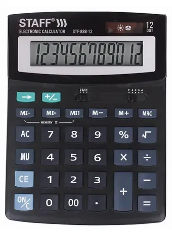 Главная » Все для офиса Калькулятор 12 разрядный настольный, двойн.питание, 200*150мм Просмотров 6 Калькулятор 12 разрядный настольный, двойн.питание, 200*150мм
