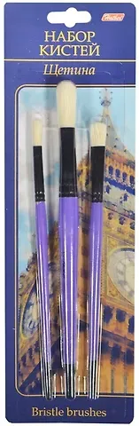 Набор из 3 шт. кистей с ворсом щетины, круглые, № 7,12, и плоская № 12. На ручку нанесен логотип Hatber, номер и название кисти, а также штрих-код . Упаковка в блистерную упаковку с подвесом. Кисти универсальны, ими могут пользоваться как дети, так и профессиональные художники.