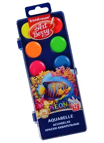 Краски акварельные 12цв. НЕОН, с УФ защитой, пл/уп., Art Berry