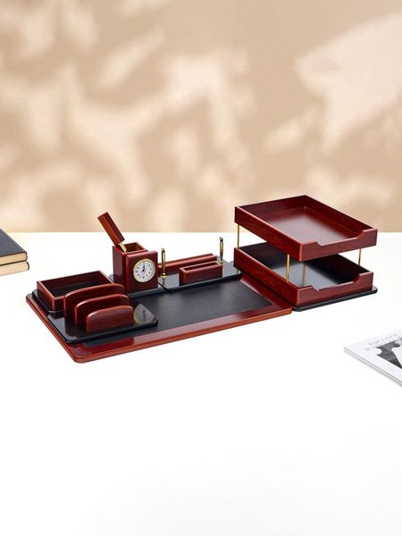 Порой рабочий стол настолько загружен, что негде расписаться или составить документ от руки. А на большинство людей беспорядок действует негативно, снижает концентрацию и продуктивность.Компактный настольный набор поможет избежать хаоса на рабочем месте. Храните в нём канцелярские принадлежности или другие мелочи, чтобы правильно организовать пространство. К тому же изделие имеет минималистичный дизайн и выполнено под дерево, поэтому оно украсит собой любое место как декоративный элемент.С помощью такого аксессуара можно поздравить сотрудников, руководство, деловых партнёров, также он подойдёт в качестве подарка учителям и преподавателям.