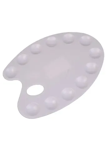 Палитра для рисования идеально подходит для смешивания красок и получения новых цветов. Легкая и практичная с отверстием для руки палитра удобна в использовании. Является незаменимым атрибутом как для начинающих художников, так и для профессиональных творцов. Легко отмывается после использования.