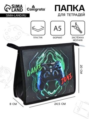 Стань мастером порядка с удобным аксессуаром! Чёрная папка для тетрадей A5 «Gamer» от deVENTE – это практичный и стильный выбор для мальчиков, ценящих комфорт и организованность в учебе.Стильный дизайн для современного геймера: Эта черная папка с модным рисунком станет отличным дополнением к школьной экипировке любого мальчика, подчеркивая его интерес к современным технологиям и играм.Оптимальные размеры для тетрадей: Формат A5 и полукаркас придают аксессуару нужную жёсткость, защищая содержимое от повреждений, а комфортное хранение обеспечивает одно просторное отделение.Надёжная защита: Верхняя молния позволяет быстро и безопасно закрывать папку, предотвращая случайное выпадение тетрадей.Высококачественный пластик: Материал папки гарантирует долговечность и устойчивость к ежедневным нагрузкам, что делает её идеальной для частого использования.Идеальный спутник для учебы: Папка станет верным помощником в учебных буднях, обеспечивая порядок и экономию времени. Аккуратный и компактный размер позволяет носить её в рюкзаке или в руках, не создавая неудобства. Отличный выбор для заботливых родителей, которые хотят привить своим детям навыки организованности и самостоятельности. Подарите вашему ребёнку надежного помощника в учебе!