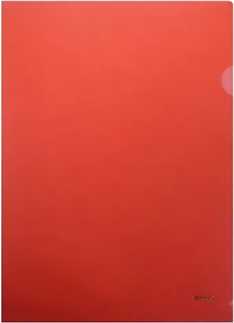 Папка-уголок формата А4 выполнена из качественного полупрозрачного цветного пластика толщиной — 0,2 мм (200 мкм). В правом нижнем углу папки серебристое тиснение.