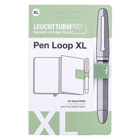 К комплектации Leuchtturm1917 добавлена ручка Leuchtturm1917 Pen Loop XL цвета Sage, позволяющая носить с собой ручку большего размера. Больший размер дает вам возможность добавить в блокнот подставку для ручек в любом месте по вашему выбору! Самоклеящаяся подложка на петле для ручки просто приклеивается к внутренней крышке вашего блокнота и подходит для большего количества ручек-роллеров или перьевых ручек, чем обычный размер. Подберите петлю для ручки к обложке блокнота или сочетайте ее с контрастным цветом! Прочная эластичная петля имеет размер 20 мм, а размеры клейкой основы — 40 х 40 мм. Петли для ручек Leuchtturm1917 производятся на Тайване.