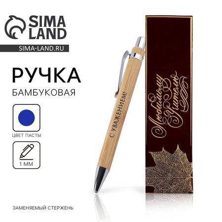 Ручка шариковая, бамбуковая, в деревянном футляре, синяя паста, 1.0 мм «Любимому учителю»