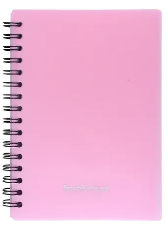 Тетрадь общая формата А6 (102×146 мм). Обложка из высококачественного износостойкого глянцевого пластика. Пастельный цвет обложки c перламутром. В блоке 80 листов в клетку. Бумага офсетная плотностью 60 г/м2. Цвет линовки — синий. Скругленные уголки обложки. Тип скрепления — спираль.