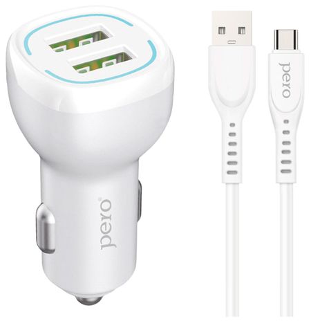 Автомобильное зарядное устройство PERO AC04 с 2-мя USB-портами, LED-подсветкой и максимальной выходной силой тока до 2.4 A.С дата-кабелем в комплекте: Type-C.Характеристики:Количество портов USB: 2Кабель в комплекте: Type-CДлина кабеля в комплекте: 1 метрМаксимальная выходная мощность: DC 5 В, 2.4 AВходное напряжение: 12-24 ВРазмер зарядного устройства: 64x31x31 мм
