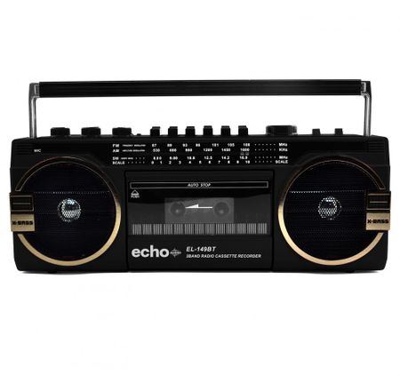 Echo Audio Retro Blast Cassette Player Bluetooth Boombox, AM/FM/SW Radio, Two Speakers, Voice Recorder, Headphone Jack, Play USB / SD Card (Black)