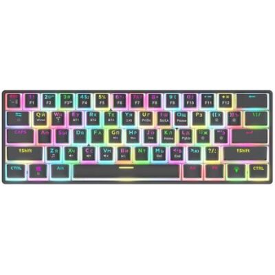 Jet.A Panteon T2 Pro BS — механическая, программируемая, игровая клавиатура с RGB-подсветкой и в компактном корпусе. Совместима с ПК и ноутбуками (Windows 8 и выше), Android 8.0 и выше, Mac 10.6 и выше, IOS 13/0, PlayStation 3/4/4 Pro/5, а также другими устройствами, поддерживающими проводное и беспроводное подключение клавиатуры. Особенности 3 варианта подключения Клавиатура поддерживает 3 варианта подключения. Классическое проводное подключение активируется автоматически при использовании кабеля. Беспроводное подключение при помощи USB-передатчика по радиоканалу 2.4 Ггц (для активации режима необходимо отключить кабель, подключить USB-передатчик к гнезду USB и нажать сочетание клавиш FN+Y). Беспроводное соединение Bluetooth 5.0 (технология Bluetooth позволяет подключить клавиатуру к устройствам, в которых отсутствуют порты USB на платформах Android, Mac, iOS, Windows. Можно выполнить сопряжение поочерёдно с 3 устройствами при помощи сочетания клавиш FN + E/R/T и переключаться между ними используя соответствующие сочетания) Свитчи OUTEMU Black Клавиши работают на чёрных свитчах OUTEMU Black. Основной отличительной чертой OUTEMU Black является усилие на нажатие в точке срабатывания около 60 г. Такая особенность обеспечивает исключительную точность при работе с клавиатурой, т.к. случайные нажатия полностью исключены. OUTEMU Black — это особенное тактильно приятное нажатие и чёткость срабатывания свитча при отсутствии усталости пальцев. Hot Swap — опция, которая позволяет быстро и без проблем заменить вышедший из строя свитч или установить свитч другого цвета LED-подсветка 22 режима подсветки доступно без использования программного обеспечения, переключать режимы можно кнопкой управления подсветки. Сочетание клавиш Fn+Tab переключает цвета в рамках режима. При использовании программного обеспечения доступно 30 различных режимов, а также можно создать пользователький режим подсветки с использованием палитры RGB Неограниченный антигостинг Модель обладает функцией неограниченного антигостинга. Это открывает широчайшие игровые возможности — нажатие на каждую клавишу анализируется платой отдельно, что позволяет при управлении игровыми действиями одновременно нажимать любое количество клавиш, не опасаясь за их некорректную регистрацию или искажение последовательности нажатия Продуманная конструкция Клавиатура обладает усиленным каркасом и массой 430 граммов. Благодаря прорезиненному покрытию всех ножек клавиатура всегда прочно фиксируется на столе и сдвинуть её в пылу азарта достаточно сложно. Геометрия клавиш обеспечивает максимальный комфорт в игре и работе. Трендовый игровой форм-фактор корпуса TKL (60%) придётся по душе любителям гейминга. Малый размер позволяет во время игры максимально удобно расположить клавиатуру под левой рукой под углом 45° и более. При этом, несмотря на сокращённое количество клавиш, фун…