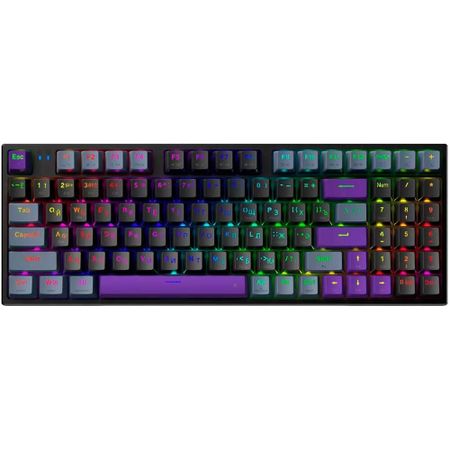 Machenike K500F-B94 Obsidian (JJ02GS00CRU) — механическая клавиатура с 94 клавишами, сочетающая в себе стильный дизайн и передовые технологии. Данная модель идеальна для игр и повседневного использования. Особенности Три режима подключения Клавиатура поддерживает проводное подключение через USB, а также беспроводные режимы Bluetooth и 2.4 ГГц, адаптируясь к различным устройствам и операционным системам Встроенный аккумулятор Встроенный аккумулятор ёмкостью 3000 мАч обеспечивает длительное время автономной работы без подзарядки Дополнительный набор кейкапов PBT кейкапы двойного литья устойчивы к стиранию. Благодаря особой технике изготовления кейкапы пропускают символы, что позволит вам насладиться красотой и яркостью подсветки. Дополнительный набор кейкапов позволит кастомизировать цвет клавиатуры на свой вкус Подсветка RGB Создай свою геймерскую атмосферу. Управляй режимами, скоростью и яркостью подсветки. Особая рассеивающая линза в свитче позволит распределить свет по периметру всего кейкапа 5 слоёв шумоизоляции Благодаря пяти слоям шумоизоляции тайпинг на такой клавиатуре ощущается на ином тактильном уровне