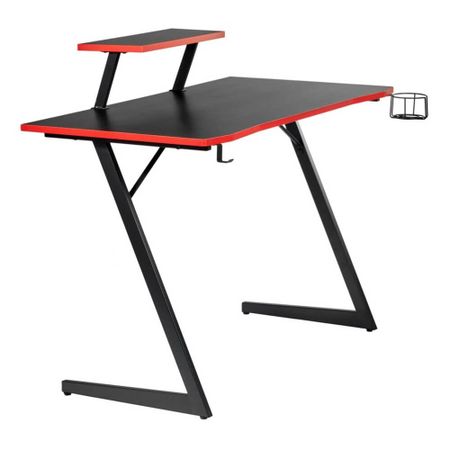 Основные характеристики — Тип стола: игровой — Форма: прямоугольная — Размещение: прямое — Материал столешницы: МДФ — Ширина рабочей поверхности: 110 см — Глубина рабочей поверхности: 59 см — Максимальная нагрузка: 200 кг Столешница — Тип поверхности столешницы: текстурная — Толщина столешницы: 1.6 см — Закругленные углы: да Оснащение — Общее количество полок: 1 Дополнительные характеристики — Встроенный крючок для гарнитуры: да — Дополнительная информация: подставка для кружки Корпус — Материал корпуса: металл, МДФ — Материал полок: МДФ — Материал ножек: металл — Цвет столешницы: чёрный — Цвет корпуса стола: чёрный Комплектация — Инструкция: да Размеры и вес — Высота: 75 см — Ширина: 110 см — Глубина: 59 см — Вес: 14.4 кг