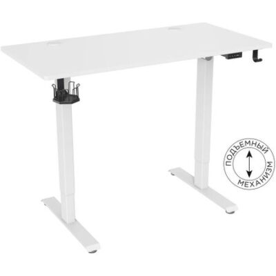 Основные характеристики- Тип стола: игровой — Форма: прямоугольная — Размещение: прямое — Материал столешницы: МДФ — Ширина рабочей поверхности: 120 см — Глубина рабочей поверхности: 60 см — Максимальная нагрузка: 80 кг Столешница- Тип поверхности столешницы: матовая — Закругленные углы: да Дополнительные характеристики- Кабель-канал: да — Регулировка высоты с помощью электропривода: да — Встроенный крючок для гарнитуры: да — Дополнительная информация: подстаканник, держатель сетевого удлинителя, скорость подъёма/опускания — 25 мм/с, уровень шума при подъёме/опускании — 55 дБ, память положений — 2, цифровой дисплей, питание от сети Корпус- Материал корпуса: сталь — Материал ножек: сталь — Цвет столешницы: белый — Цвет корпуса стола: белый — Регулировка высоты опорных ножек: да — Диапазон регулировки: 72-120 см — Резиновые ножки: да Комплектация- Инструкция: да Размеры и вес- Высота: 120 см — Ширина: 120 см — Глубина: 60 см