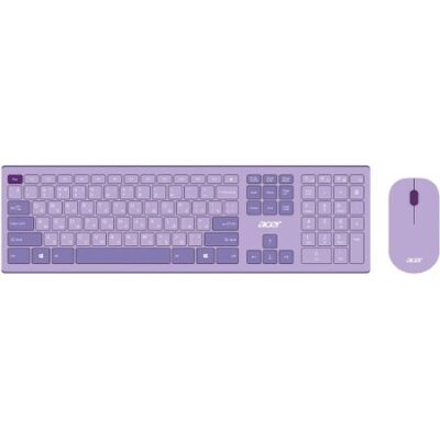 Основные характеристики- Тип подключения: беспроводная — Назначение: для пк — Совместимость с ОС: Microsoft Windows Мышь- Тип мыши: беспроводная — Тип корпуса мыши: симметричный — Количество кнопок: 2 — Тип сенсора: оптический — Дизайн: для левой и правой руки — Питание беспроводной мыши: элементы питания — Тип элементов питания: AA — Количество элементов питания: 2 Сенсор мыши- Максимальное разрешение сенсора: 1200 dpi Кнопки- Количество колесиков прокрутки: 1 — Вертикальная прокрутка: да Клавиатура- Тип клавиатуры: стандартная — Тип механизма клавиш: ножничный — Количество клавиш: 109 — Низкопрофильные клавиши: да — Цвет русской раскладки: белый — Цвет английской раскладки: белый — Питание беспроводной клавиатуры: элементы питания — Тип элементов питания: AAA — Количество элементов питания: 2 Интерфейсы- Проводной интерфейс подключения: нет — Тип беспроводной связи: радиоканал — Форм-фактор приемника: миниатюрный — Радиус действия беспроводной связи: 10 м Корпус клавиатуры- Цвет: фиолетовый — Материал корпуса: пластик Корпус мыши- Цвет: фиолетовый — Материал корпуса: пластик Комплектация- Беспроводной адаптер: да Размеры и вес- Высота клавиатуры: 3 см — Ширина клавиатуры: 40 см — Глубина клавиатуры: 10 см — Высота мыши: 3 см — Ширина мыши: 5 см — Глубина мыши: 8 см