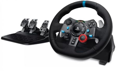All the controls are located right at your fingertips. This sports steering wheel is equipped with a D-manipulator, buttons and control levers. LED indicators located directly above the central part of the steering wheel signal the need to switch to an up or down gear to ensure maximum acceleration. You can make the transition without taking your eyes off the road. The «+/-» buttons and a 24-position mode switch on the front surface of the steering wheel allow you to adjust the controls in full accordance with your preferences, the G29 Gaming steering wheel is designed specifically for the latest racing games for PlayStation ® 4 and PlayStation ® 3 consoles. And thanks to Logitech Gaming Software, the G29 Driving Force steering wheel can also be connected to a PC The Driving Force gaming steering wheel is reliable in operation and can withstand any load on virtual tracks. The steering wheel of the G29 is equipped with stainless steel control levers and pedals, as well as an axle with two steel ball bearings. A high-quality braid of hand-stitched leather creates a feeling of driving a real racing car, and in addition, provides additional comfort during the game and increases the wear resistance of the steering wheel, Smooth and almost silent steering. The transmission design used in the automotive transmission to reduce unwanted noise and vibration is taken as a model for the bevel gear. Due to the luftless tension, the steering wheel and pedals are rigidly fixed for maximum ease of operation. The G29 Driving Force sports steering wheel is equipped with a reliable and durable Hall sensor (the position of the steering wheel is determined using magnetic fields), a separate floor unit with built-in gas, brake and clutch pedals will provide the appropriate body position for more realistic sensations. Thanks to the possibility of comfortable gear shifting, speed gain and braking with the G29 Driving Force, you can feel yourself driving a real car, the nonlinear brake pedal simulates the operation of the braking system, reacting to the force of pressing. This gives the feeling of faster and more precise braking. It is possible to increase the ease of operation by swapping the pedal pads and thereby facilitating the re-gas, Rubber feet for installation on hard surfaces and a patented anti-slip coating system for installation on the carpet securely hold the pedal unit in the selected location Connection interface: USB; Steering wheel braid material: Leather; Rotation angle: 900; Number of buttons: 24; Pedals: Clutch, Brake, Gas; Compatibility: PC, PS3, PS4