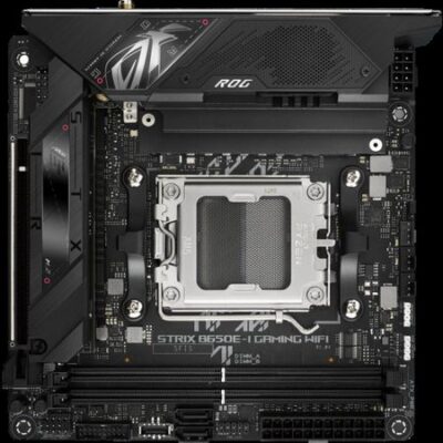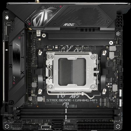 Материнская плата ASUS ROG STRIX B650E-I GAMING WIFI — высокопроизводительное и стильное решение для гейминга в компактном форм-факторе. Благодаря размерам 170×170 мм она подходит для установки внутри системного блока с ограниченным пространством. Плата предусматривает подключение процессора AMD с сокетом AM5. Функционал модели дополнен слотами под установку двух модулей оперативной памяти DDR5, слотом расширения PCI-E x16, 2 разъемами M.2 и 2 SATA для устройств хранения.ASUS ROG STRIX B650E-I GAMING оборудована сетевым адаптером со скоростью 2.5 Гбит/с. Внешний контроллер беспроводной коммуникации с антенной поддерживает Wi-Fi и Bluetooth. На боковой грани расположен ряд интерфейсов для подключения различных периферийных устройств: порты USB Type-A и Type-C, видеовыход HDMI, оптический разъем S/PDIF, аудиоразъемы 3.5 мм. За стабильное охлаждение компонентов отвечают массивные радиаторы.