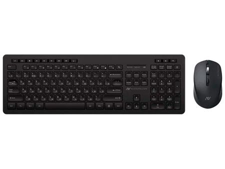 Универсальный беспроводной комплект, который отлично подойдет для тех, кому важны умные решения в сочетании с лаконичным дизайном.Характеристики:Тип: комплект клавиатурамышьТип беспроводной связи: радиоРабочее расстояние: до 10 метровМатериал корпуса: пластикОтсек для приемного блока (мышь): ДаИндикация разрядки батарей (клавиатура): ДаТип мыши: оптическаяТип клавиатуры: мембраннаяТип беспроводной мыши: радиоБеспроводная мышь: ДаКоличество кнопок (мышь): 4 штКоличество клавиш (клавиатура) : 107 клавиш 12 (мультимедийные кнопки)Скроллер (мышь): ДаОптическое разрешение: 1000/1200/1600 DPIИнтерфейс приемного блока: USBПриемный блок в комплекте: ДаИнтерфейс подключения: радиоканалПитание: АА батарея x 2Максимальная частота опроса USB шины: 250ГцСкорость отслеживания6 До 10 ipsМаксимальное ускорение: 10gЦвет мыши: черныйЦвет клавиатуры: черныйГабаритные размеры мыши (В*Ш*Г): 103 x 61 x 32Габаритные размеры клавиатуры (В*Ш*Г): 438 x 143 x 18Вес (мышь): 56 гВес (клавиатура): 680 г