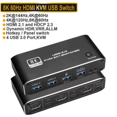 Переключатель HDMI 2,1 KVM HDMI USB 3,0 KVM переключатель 8K 1080 @ 240 Гц USB KVM переключатель для общего индикатора клавиатуры и принтера мыши