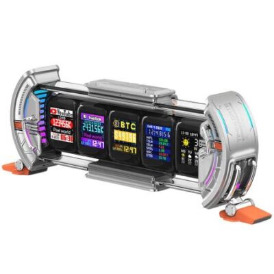 Пиксельный дисплей Divoom Times Gate — завораживающее сочетание передовых технологий и эстетики киберпанка, тщательно разработанные для того, чтобы превратить вашу игровую комнату в захватывающий футуристический рай. Особенности Интеллектуальный помощник по жизни Благодаря фирменному приложению Divoom данный гаджет станет вашим интеллектуальным помощником, позволяя вам свободно создавать шаблоны экрана и циферблаты данных. Практичные циферблаты включают в себя мировые часы, прогноз погоды в реальном времени, специальные календари праздников, что помогает вам управлять временем и задачами. Интеллектуальные панели управления данными отображают ваши виртуальные активы, такие как курсы фондовых бирж, количество подписчиков в социальных сетях и данные об отдельных играх, предоставляя вам исчерпывающую информацию Будильники Цифровые часы с 5 высококачественными полноцветными LCD-экранами IPS — это шедевр, в котором органично сочетаются креативность и технологии. Каждый экран дисплея способен демонстрировать потрясающие статические изображения размером 128х128 пикселей и динамические GIF-файлы с фиксацией времени в пределах каждого кадра. Независимо от того, стоят ли часы на полке в игровой комнате или используются в качестве украшения офиса, они станут неотъемлемой частью вашего домашнего интерьера, придавая помещениям неповторимый шарм и стильную атмосфер RGB-подсветка 45 светодиодов RGB высокой яркости, которые могут отображать 16 миллионов цветов, настраивать множество различных цветов и динамическую или статическую подсветку в приложении, а также демонстрировать красочные и насыщенные световые эффекты. Создавайте атмосферу освещения с помощью различных тем, создавая не только крутые игровые и киберспортивные декорации для рабочего стола, но и пиксельные графические гаджеты в стиле киберпанк Свобода творчества Создавайте потрясающие визуальные эффекты или анимацию с помощью приложения Divoom, которые выражают ваше настроение, послание или миссию. Приложение Divoom предлагает полезные инструменты рисования для создания собственного изображения, анимации и прокрутки текстовых сообщений, а также простой импорт созданных изображений и GIF-файлов. В приложении также есть огромная галерея и сообщество, где вы можете делиться своими рисунками, а также взаимодействовать с энтузиастами пиксельной графики по всему миру