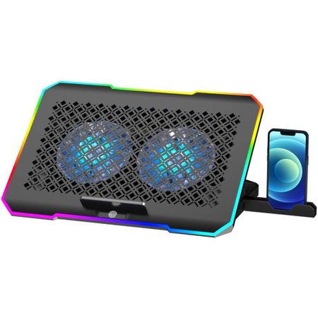 Охлаждающая подставка STM IP82 разработана специально для мощных и игровых ноутбуков с диагональю экрана до 17 дюймов. Удобная и красивая подставка поможет вам организовать комфортное рабочее или игровое место на вашем столе как дома, так и в офисе. Особенности 5 положений угла наклона Модель имеет 5 положений угла наклона. Правильная высота экрана и угол наклона клавиатуры ноутбука снизят нагрузку на мышцы шеи и плечевого пояса, снизят утомляемость рук, повысят вашу работоспособность и комфорт длительного нахождения перед экраном ноутбука Два вентилятора Модель оснащена двумя большими вентиляторами (125x125x15 мм), мощность обдува регулируется колёсиком на задней стороне подставки Два порта USB 2.0 Подставка оснащена двумя портами USB 2.0 для подключения или зарядки периферийных устройств и удобным держателем для смартфона, который крепится сбоку подставки RGB-подсветка С помощью удобной сенсорной панели, расположенной в нижней части подставки, вы можете выбрать один из 10 режимов красочной RGB-подсветки