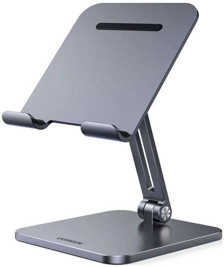 Подставка настольная складная для планшетаОсобенностиПрочная и универсальнаяИзготовлена из высококачественного алюминиевого сплава — усиленная металлическая основа и двойные оси обеспечивают плавную регулировку вашего устройства. Упростите свою жизнь и будьте более продуктивными с Ugreen.Современный антрацитовый цветЭта регулируемая подставка для планшета создает ощущение урбанистичности и вневременной элегантности и поэтому подходит для модернизации и лаконичности вашего рабочего стола или рабочего места.Полная защитаСиликоновые накладки делают подставку более устойчивой на рабочем столе. Противоскользящие накладки на держателе надежно фиксируют ваше устройство и не дадут ему упасть или поцарапаться.Удобная настройка угла использованияНастольная подставка для планшета позволит использовать ваше устройство под любым удобным углом. Идеально подходит для использования планшета или смартфона в путешествии или командировке. Широкая совместимость:Совместимость с устройствами до 12,9 дюймов, такими как: iPad Air 2 3 4 5 / iPad Pro 2021 / iPad Mini, Surface Pro 7/6 / X / Surface Go, Huawei MatePad T10s / T8 / MediaPad T5 / T3, Galaxy Tab A / A7 / S7 / S6, Lenovo Tab M10 / M7, iPhone 13 Pro Max / 12 Pro Max / 11 / XR / XS / SE 2020 / SE 3 2022, Galaxy S21 / S20 / S10 / S7, Huawei Redmi Poco OnePlus и т. д.Технические данныеСовместимый размер устройств: le;12,9 дюймаРегулируемый угол наклона: 0-360 градусов