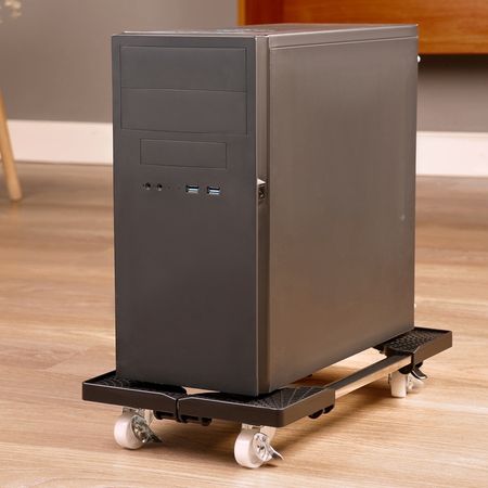 Подставка под системный блок на колёсах, универсальная, 22/34 — 42/53 см, металл, пластик предназначена для того, чтобы корпус вашего компьютера не касался пола, ковра или рабочего стола, обеспечивая лучший поток воздуха для остывания. Регулируемая подставка подходит для ПК большинства размеров. Ширину и длину можно отрегулировать в соответствии с размером корпуса ПК. Четыре универсальных колеса, вращающиеся на 360°, позволяют переместить компьютерную башню в нужное положение, что упрощает уборку земли. Также колеса можно заблокировать, чтобы при необходимости они оставались неподвижными.Дополнительно: Ширина регулируется от 220 до 340 мм. Длина регулируется от 420 до 530 мм.