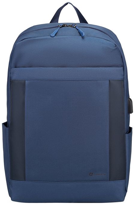 Рюкзак для ноутбука 15.6Особенности:- Городской рюкзак из водонепронецаемой ткани — Выполнен из облегченных современных надежных материалов- Утолщенные стенки и специальная защита дна, обеспечивают сохранность ноутбука и различных принадлежностей от внешних воздействий — Переднее отделение на молнии для хранения различных аксессуаров: ключи, наушники, мышь, смартфон, зарядные устройства и иные устройства- Основное просторное отделение с двойными застежками молниями для удобного доступа — Дополнительные отделения с фиксатором для ноутбука и планшета до 10.1 /Документов формата А4 — Удобная панель-органайзер для хранения письменных принадлежностей, паспорта, смартфона, визитных карт и других принадлежностей- Ремешок с карабином для ключей- Внешний USB порт с встроенным кабелем micro USB- Два боковых кармана для зонта/бутылок- Багажный ремень- Мягкая и прочная ручка для надежной транспортировки в руках- Регулируемые наплечные ремни с мягкой вентилируемой накладкой для удобных длительных путешествий.- Нет висящим лямкам. Новая система регулировки плечевых ремней с фиксируемым блоком лямок- Металлопластиковая надежная фурнитураХарактеристики:Материал: ПолиэстерЦвет: СинийВнешний размер: 440х340х120 ммВнутренний размер: 430х310х110 ммВес: 470 гр