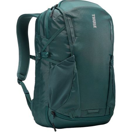 Thule EnRoute — это многофункциональный спортивный рюкзак для работы и активного отдыха со специальными отделениями для ноутбука и документов. Особенности Оснащение Рюкзак объёмом 30 литров, имеет выступающие карманы для ноутбука с диагональю 15.6 дюйма и планшета с диагональю 10.5 дюйма. Карман с наружным доступом позволяет отделить грязные вещи или обувь от чистых и легко убирается, когда не нужен. Жёсткий карман SafeZone для телефона, очков или других ценных вещей. Молния по всей поверхности рюкзака упрощает укладку вещей. В основном отделении есть сетчатая перегородка с молнией. В сетчатые эластичные внешние боковые карманы можно положить бутылку воды, блок питания или зонт Карман из термополиуретана для мокрых вещей Непрозрачный водонепроницаемый карман из термического полиуретана на молнии защитит ваши вещи от намокания, а также от чужих глаз Крепление рюкзака к чемодану Специальный ремень для крепления рюкзака к чемодану на колесиках — путешествуйте с комфортом Комфорт Нагрудный ремень, задняя панель с мягкой подкладкой и вентиляционным каналом, а также боковые стягивающие ремни для распределения нагрузки обеспечат вам дополнительный комфорт