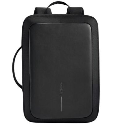 Деловой рюкзак Bobby Bizz 2.0 — надёжный компаньон на бизнес-встречах, в коротких поездках и прогулках по городу. За несколько секунд трансформируется в строгий портфель.Bizz 2.0 подойдёт для ноутбука с диагональю экрана до 16” и планшета размером до 12.9”. А также документов и всего, что может пригодиться в течение дня. Особенности Рюкзак трансформируется в портфель За несколько секунд рюкзак превращается в деловой портфель. Отстегните лямки — они крепятся на карабины — и спрячьте в специальный карман на спине. Для такого формата у Bizz 2.0 есть удобная мягкая ручка сбоку Отделения для ноутбука и планшета Удобно брать с собой ноутбук с диагональю экрана до 16” и планшет с экраном до 12.9”. Мягкая подкладка дополнительно защищает технику. Внутри — карманы для небольших вещей и отделение для документов. В каждой лямке есть кармашек для карты или проездного, а в спинке прячется карман для смартфона Система защиты вещей Металлический каркас Bobby Bizz 2.0 обеспечивает прочность конструкции и защищает вещи внутри. Многослойный материал не пропускает влагу и грязь. Молния основного отделения прикрыта складкой ткани. С помощью прочного ремешка на спине рюкзак пристегивается к ручке чемодана. В правую лямку вшит металлический трос с кодовым замком — так Bizz 2.0 можно закрепить на надёжной опоре Забота об окружающей среде Bobby Bizz 2.0 изготовлен из переработанных материалов. При производстве одного рюкзака используется 47 пластиковых бутылок