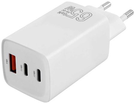 Универсальный сетевой адаптер с тремя разъемами: 2х USB Type C 1х USB Type A. Поддерживает быструю зарядку по протоколам QC и USB PD, а максимальная мощность 65 Вт позволяет использовать его для зарядки и постоянного питания ноутбуков. Все три порта можно использовать одновременно (общая мощность в этом случае не будет превышать 63 Вт).Адаптер создан по новейшей GaN технологии: вместо кремния в транзисторах используется нитрид галлия, что снижает выделение тепла и позволяет делать мощные устройства в очень компактных корпусах. Устройство обладает защитой от перенапряжения, перегрузки по силе тока, короткого замыкания, перегрева. Также поддерживается новая технология PPS (Programmable Power Supply), которая позволяет динамично изменять напряжение и силу тока в процессе зарядки, чтобы снизить выделение тепла и продлить жизнь аккумуляторам вашего устройства (если оно поддерживает PPS зарядку).Характеристики:Тип: сетевое зарядное устройствоМодель: TFN GAN ACC 65WКод производителя: [TFN-WC-65W-2113-WH]Основной цвет: белыйЭлектрические параметрыВходное напряжение: 110-240 ВМаксимальный выходной ток: 3.25 АВыход на порт: Type-C1-2: 3.3-11В3А, Type-C1-2: 3.3-21В3А, Type-C1-2: 5В3А, Type-C1-2: 9В3A, Type-C1-2: 12В3А, Type-C1-2: 15В3А, Type-C1-2: 20В3.25А, USB-A: 5В3А, USB-A: 9В3А, USB-A: 12В3А, USB-A: 20В2.25АМинимальное выходное напряжение: 3.3 ВМаксимальное выходное напряжение: 21 ВВыходная мощность: 65 ВтКабель в комплекте: без кабеляРазъем на блоке ЗУ: 1xUSB2xUSB-CФункциональные возможностиПодходит для зарядки ноутбука: естьПоддержка технологии GaN: естьБыстрая зарядка: естьСтандарты быстрой зарядки: Power Delivery, Programmable Power Supply, Quick ChargeЗащита: от короткого замыкания, от перегрева, от перегрузки, от перенапряжения, от сверхтокаГабариты и весВысота: 48 ммШирина: 31 ммГлубина: 97 ммВес: 130 г