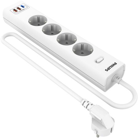 Сетевой фильтр удлинитель Philips — это практичное решение для организации подключения множества электрических устройств в одном месте. Удобный и функциональный, он обладает тремя стандартными розетками, что позволяет одновременно подключать несколько приборов, сохраняя порядок и избегая множества удлинителей и переходников.Сетевой фильтр оснащен двумя портами USB-A и одним портом Type-C, что делает его идеальным для зарядки ваших современных мобильных устройств. Это особенно удобно для использования с телефонами, планшетами и другими гаджетами, обеспечивая максимальное удобство и экономию места на столе. Кроме того, максимальная защита от перегрузок и заземление по безопасны для эксплуатации, что важно для защиты подключаемой техники.Белый цвет устройства придаст современный вид любому интерьеру, а компактные размеры делают его легким и удобным в использовании.Этот сетевой фильтр — идеальный выбор для офисов, учебных заведений и домашних нужд. Вы легко сможете организовать рабочее место, не беспокоясь о недостатке розеток, а наличие встроенного выключателя сделает эксплуатацию еще более комфортной. Сетевой удлинитель Philips — это надежность и удобство в каждом доме.Обратите внимание на все преимущества данного устройства: оно не только сделает вашу жизнь проще, но и обеспечит безопасность в использовании electronic devices. Не упустите возможность улучшить свое пространство с помощью такого многофункционального сетевого фильтра.Характеристики:Тип: сетевой фильтрДлина кабеля питания, м: 5Вид розеток: розетка Тип F (Schuko)Электробезопасность: защита от детейВходное напряжение, В: 100-250Количество розеток, шт.: 4Номинальный ток, А: 10Макс. ток, А: 10Макс. нагрузка, Вт: 2500Стандарт защиты IP: 30Цвет: белыйИнтерфейсы: USB, USB Type-CИнтеграция в систему Умный дом: нет