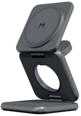 Зарядная станция специально для Samsung устройствОсобенности:Быстрая беспроводная зарядка мощностью 22 ВтЗарядка 3х устройств одновременно, поддержка Galaxy Buds и Galaxy WatchСовместимость с MagSafe, поддержка Qi, PD, QCНадежное магнитное крепление класса N52Стильный складной и компактный корпус из алюминиевого сплаваРегулируемый угол наклона с надежной фиксацией устройстваТехнические характеристики:Вход: 5V/3А, 9V/2.22А; 12V/3АВыход: 22W макс.Стандарт: Qi, PD, QCКомплектность:Зарядное устройство 3 в 1, кольцо MagSafe, трафарет, кабель USB Type — C для зарядки