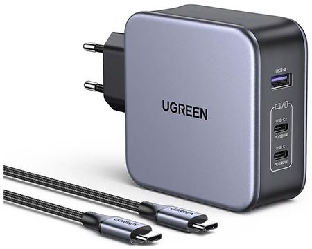 Сверхбыстрая зарядка для MacBook Pro 16:Передовой протокол PD 3.1 Nexode 140W обеспечивает максимальный уровень зарядки, недостижимый для других зарядных устройств USB-C. Зарядите свой MacBook Pro 16 дюймов от 0 до 56 за 30 минут, что в 1,8 раза быстрее, чем зарядное устройство для ноутбука USB-C мощностью 65 Вт.Быстрая многопортовая зарядка 3-в-1:Зарядное устройство Ugreen Nexode 140 Вт USB-C имеет 2 порта USB-C и порт USB-A. Заряжайте два ноутбука и телефон одновременно на полной скорости, чтобы удовлетворить потребности офиса из двух человек, с помощью этого адаптера питания Macbook. Продуманно оборудованный кабель быстрой зарядки 240 Вт D 6 футов USB C на USB C.Безопасность, которой можно доверять:Система Ugreen Power Dispenser регулирует выходную мощность, защищая аккумулятор вашего устройства, чтобы он работал дольше. Для дополнительной безопасности вашего многопортового зарядного устройства от перегрева, система Thermal Guard выполняет 800 показаний температуры каждую секунду.Меньше, чем вы думаете:Революционный GaN-чип Nexode и складная вилка позволяют зарядному устройству Nexode мощностью 140 Вт поместиться на вашей ладони без ущерба для качества или мощности. Это позволяет адаптеру Nexode140W Macbook Pro Power быть на 22 меньше, чем оригинальное настенное зарядное устройство USB-C мощностью 140 Вт с двумя дополнительными портами.Широкая совместимость:Зарядное устройство Ugreen Nexode 140 Вт GaN обеспечивает быструю зарядку практически всех телефонов, планшетов, ноутбуков и других устройств USB-A и USB-C, включая MacBook Pro, MacBook Air и Dell XPS 15 /13, HP Spectre, iPad Pro/Air, Surface Pro, iPhone Series, Galaxy Series, AirPods, Switch.Основные характеристики:Тип: сетевое зарядное устройствоВход зарядного устройства: 100-240 В 50/60 Гц, 2 АОбщая мощность зарядного устройства: 140 ВтВыход зарядного кабеля: 240 Вт Макс.Порт: USB-CТок: 5 АДлина: 2 мМатериал: поликарбонатЦвет: серый/черныйКомплектация:Зарядное устройство, кабель USB Type-C, руководство пользователя