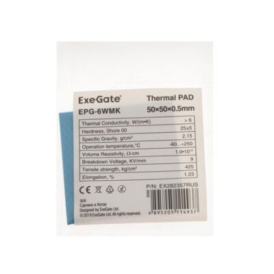 Главная » Компьютеры и оргтехника Термопрокладка ExeGate EPG-6WMK, 50х50х0.5 мм, 6 Вт/ (м•К) Просмотров 12 Термопрокладка ExeGate EPG-6WMK, 50х50х0.5 мм, 6 Вт/ (м•К) ExeGate
