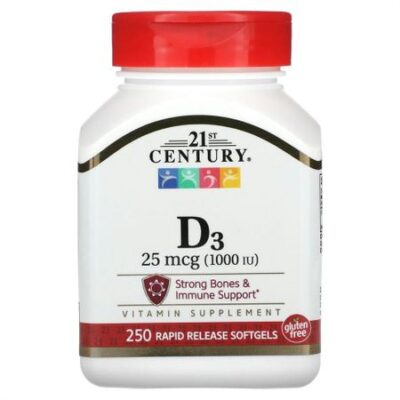 Главная » Аптека 21st Century, Витамин D3, 25 мкг (1000 МЕ), 250 мягких таблеток с быстрым высвобождением Просмотров 5 21st Century