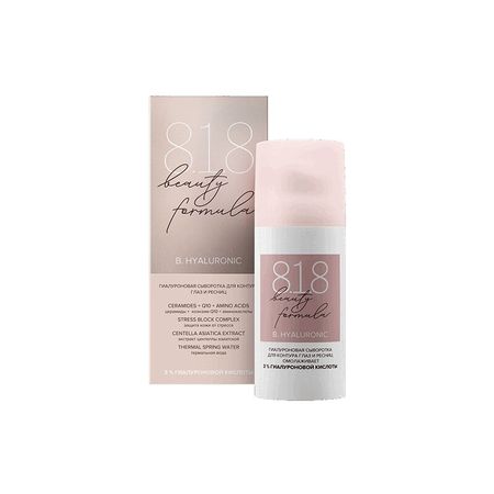 8.1.8 Beauty formula — трехфазная система профилактики и защиты кожи от стресса. Восстанавливает эпидермальный ресурс. Омолаживает кожу. Создана для чувствительной кожи женщин мегаполиса, испытывающих дефицит сна и отдыха.Гиалуроновяя сыворотка для глаз и ресниц оказывает мгновенное видимое омоложение кожи вокруг глаз. Обладает эффектом лифтинга, способствует сокращению морщин, а также восстановлению и укреплению ресниц. Защищает кожу от стресса. Обладает мгновенным и пролонгированным омолаживающим действием. Активно действующие компоненты: галуроновая кислота (низко, средне-и высокомолекулярная) в концентрации 3% уникальный Stress Block Complex, комплекс витаминов А, Е, С, антиоксиданты растительного и синтетического происхождения (Q10, сафлоровое масло), аминокислоты, церамиды, экстракт центеллы азиатской. Минерализующая вода из термального источника на юге Франции восстанавливает и успокаивает кожу.8.1.8 beauty formula сохраняет естественную красоту кожи. Активные компоненты: 3 вида гиалуроновой кислоты, церамиды, коэнзим Q10, аминокислоты, экстракт виноградных косточек, экстракт центеллы азиатской, Stress Block Complex, витамин A, витамин С, витамин Е, соевое масло, сафлоровое масло, термальная вода.