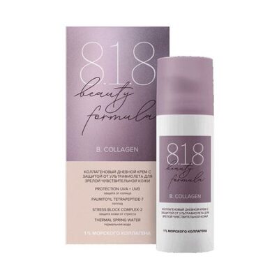 8.1.8 beauty formula — трехфазная система профилактики и защиты кожи от стресса. Создана для чувствительной кожи женщин мегаполиса, испытывающих дефицит сна и отдыха. Формула восстановления эпидермального ресурса и омоложения кожи: 8 часов сна + 1 час ухода за собой + 8 активных компонентов. Коллагеновый дневной крем с защитой от ультрафиолета для зрелой чувствительной кожи улучшает тонус и обеспечивает защиту от УФ-излучения. Корректирует глубокие и мелкие морщины. Безупречная основа под макияж. Защищает от фотостарения.