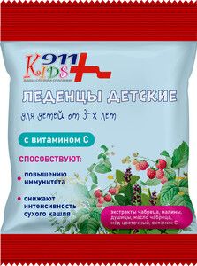 911 KIDS Леденцы детские с экстрактами чабреца душицы мёдом и Витамином С массой 2,5 г. 50 г