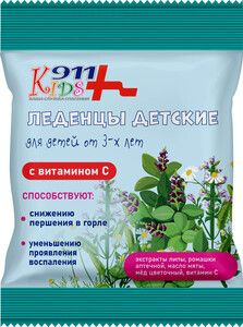 Леденцы детские с экстрактами липы, ромашки аптечной, мёдом и Витамином С.Энергетическая ценность на 100 г: 1620 кДж /388 ккал.Пищевая ценность (на 100 г): Белки — 0,0 г, Жиры — 0,0 г, Углеводы — 97 г.Содержание в рекомендуемой суточной дозировке (3 леденца)Витамин С — 21 мг.