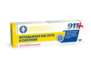 911 С муравьиной кислотой и окопником — это гель-бальзам, который обладает разогревающими свойствами. Он применяется для устранения болевых ощущений в мышцах и суставах, а также для снятия напряжения после физических нагрузок. Эффективность геля обеспечивается благодаря его компонентам — муравьиной кислоте и окопнику, которые ускоряют кровообращение в области применения и активно разогревают ткани. Гель быстро впитывается и не оставляет жирной пленки на коже, поэтому его можно использовать в любое время дня. 911 С муравьиной кислотой и окопником — это отличный выбор для людей, страдающих болями в суставах и мышцах, а также для активных спортсменов и любителей физических упражнений.Гель-бальзам с муравьиной кислотой и окопником — гелеобразная текстура от прозрачного до светло-жёлтого цветаГель-бальзам для тела рекомендуется наносить на кожу в области спины, поясницы, локтей, кистей рук и коленей.В гель-бальзаме объединена сила двух природных компонентов — муравьиной кислоты и окопника, обладающих мощнейшим противовоспалительным действием. Также муравьиная кислота согревает, а окопник снимает отечность. Кроме того, гель-бальзам содержит хондроитин, который способствует восстановлению, снимает ощущение дискомфорта.