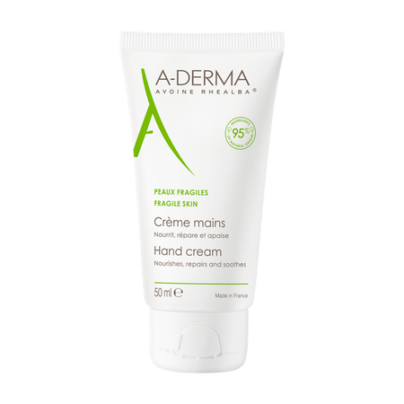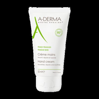 A-DERMA Питательный крем для рук 50 млВнешний вид: не жирный, приятная отдушкаСпециальные особенности: Не содержит парабенов и силиконов.Крем комфортный в нанесении, хорошо впитывается и не оставляет липкого эффекта. Формула содержит 95% натуральных компонентов. Не содержит парабенов и силиконов. Легкая гипоаллергенная отдушка придает коже рук приятный аромат, а благодаря содержанию молочка овса Реальба® крем успокаивает, разглаживает и защищает очень сухую, хрупкую кожу рук.Результат: Питательный крем для рукУвлажняет, питает и смягчает очень сухую, хрупкую кожу рук.