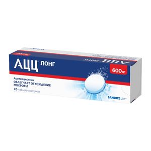 АЦЦ® Лонг — всего 1 таблетка в день, чтобы бороться с кашлем1,2!Формула прямого действия помогает очищать бронхи от мокроты и бороться с кашлем!3.Активная молекула АЦЦ® оказывает муколитический эффект, который достигается за счет прямого воздействия на структуру мокроты.В результате прямого действия АЦЦ® разрываются межмолекулярные связи в структуре мокроты и снижается ее вязкость. Это облегчает откашливание мокроты и способствует избавлению от кашля.1. Кашель как симптом заболеваний органов дыхания, сопровождающихся образованием вязкой трудноотделяемой мокроты.2. При кратковременных простудных заболеваниях длительность курса составляет 5-7 дней, согласно инструкции по медицинскому применениею АЦЦ®Актив