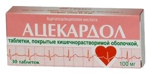 Показания к применению профилактика острого инфаркта миокарда при наличии факторов риска (например, сахарный диабет, гиперлипидемия, артериальная гипертензия, ожирение, курение, пожилой возраст); профилактика повторного инфаркта миокарда; нестабильная стенокардия; профилактика ишемического инсульта (в т.ч. у пациентов с преходящим нарушением мозгового кровообращения); профилактика тромбоэмболии после операций и инвазивных вмешательств на сосудах (например, аортокоронарное шунтирование, эндартерэктомия сонных артерий, артериовенозное шунтирование, ангиопластика и стентирование коронарных артерий, ангиопластика сонных артерий); профилактика тромбоза глубоких вен и тромбоэмболии легочной артерии и ее ветвей (в т.ч. при длительной иммобилизации в результате обширного хирургического вмешательства). Применение при беременности и кормлении грудьюПрименение салицилатов в больших дозах в первые 3 месяца беременности ассоциируется с повышенной частотой дефектов развития плода (расщепленное небо, пороки сердца). Назначение салицилатов в I триместре беременности противопоказано. Во II триместре беременности салицилаты можно назначать только с учетом строгой оценки риска для плода и пользы для матери, предпочтительно в дозах не выше 150 мг/сут и непродолжительно. В III триместре беременности салицилаты в высокой дозе (более 300 мг/сут) вызывают ослабление родовой деятельности, преждевременное закрытие артериального протока у плода, повышенную кровоточивость у матери и плода, а назначение непосредственно перед родами может вызвать внутричерепные кровоизлияния, особенно у недоношенных детей. Назначение салицилатов в III триместре беременности противопоказано. Салицилаты и их метаболиты в небольших количествах проникают в грудное молоко, поэтому в период лактации следует отменить грудное вскармливание.Состав1 таб. Ацетилсалициловая кислота 100 мг. Вспомогательные вещества: повидон низкомолекулярный — 6.